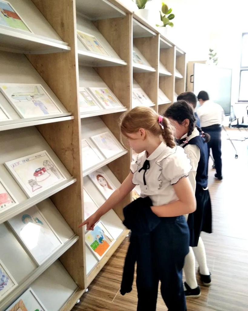 Мир профессий наших родителей - тема новой творческой выставки рисунков учащихся младших классов школы имени Ю. А. Гагарина.