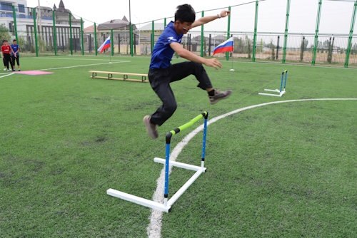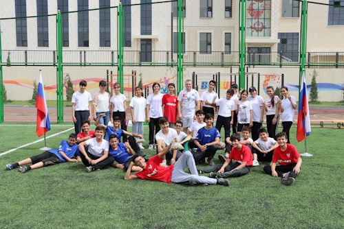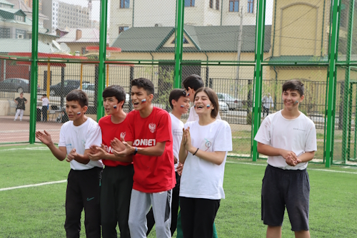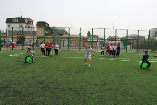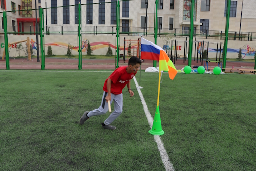 На спортивном ядре школы в этот день было шумно. Для старшеклассников были организованы веселые старты. Три команды, дух соревнований и разные полосы препятствий. Ребята попробовали себя в роли всадников на гимнастических шарах, продемонстрировали навыки игры в хоккей на траве, а также сразились в перетягивании каната. Завершилась спартакиада товарищеским матчем по футболу.