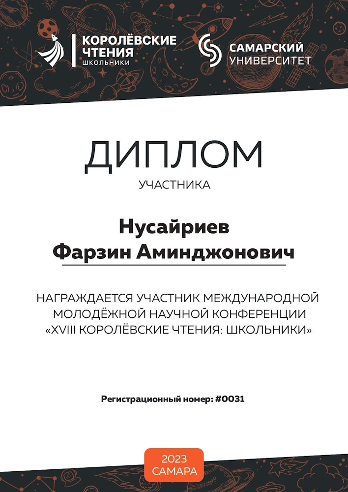 Особо поздравляем ученика 8 Б Фарзина Нусайриева с успешным выступлением на Международной молодежной научной конференции "XVIII Королевские чтения: школьники"!