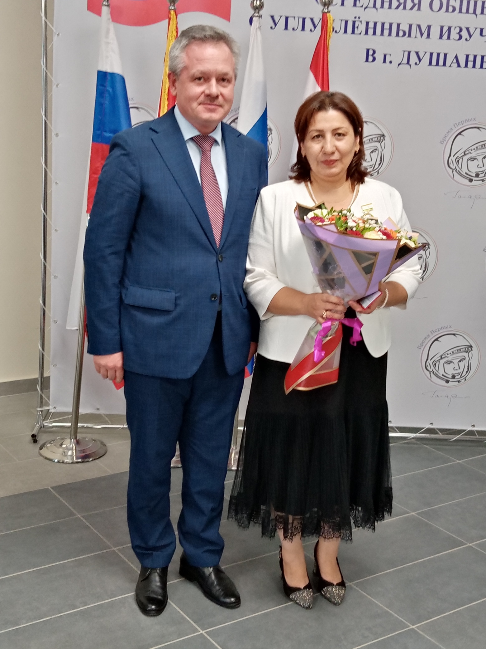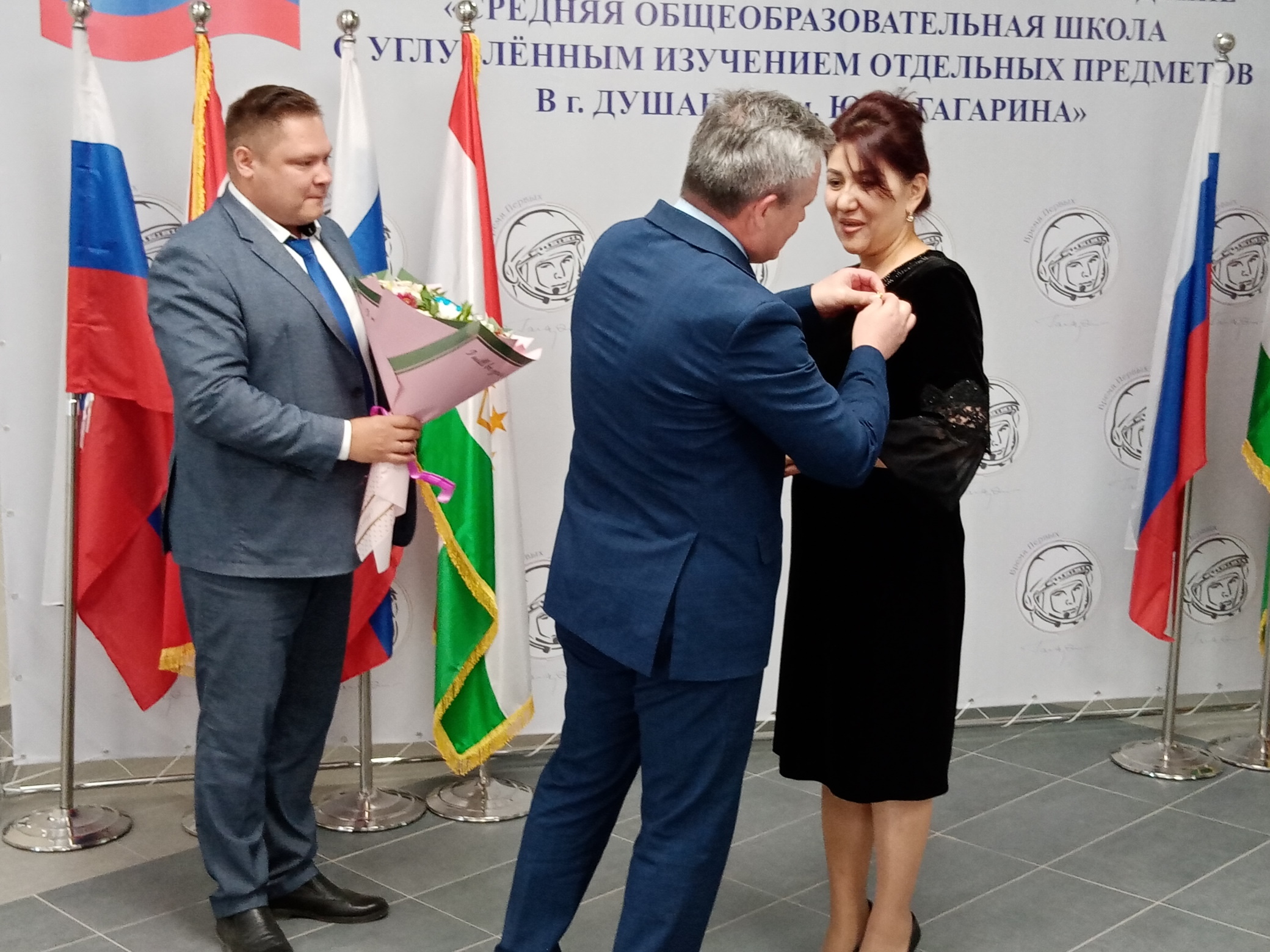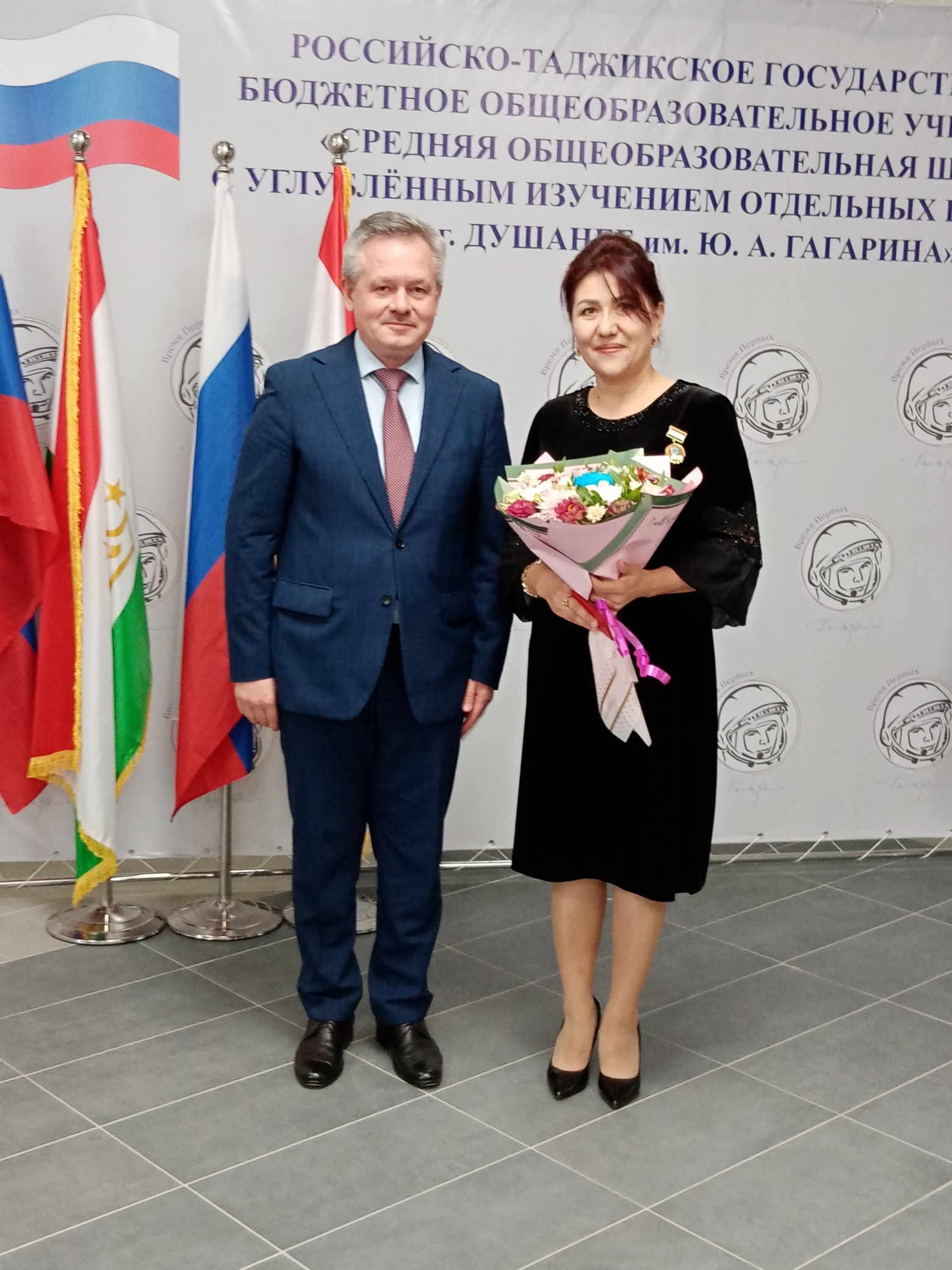 В День учителя в школе имени Юрия Гагарина побывал временный поверенный в делах России в Таджикистане Шамиль Шамсутдинов. Он поздравил с праздником педагогический коллектив, отметив, что в руках учителей судьбы людей. На учителях лежит огромная ответственность, но это почетная миссия, подчеркнул Шамиль Фоатович. Временный поверенный вручил почётные знаки «Отличник образования и науки» Министерства образования и науки Республики Таджикистан учителям английского языка Гулбахор Исматуллаевне Эшонкуловой и Санавбар Абдурахмановне Маликовой.