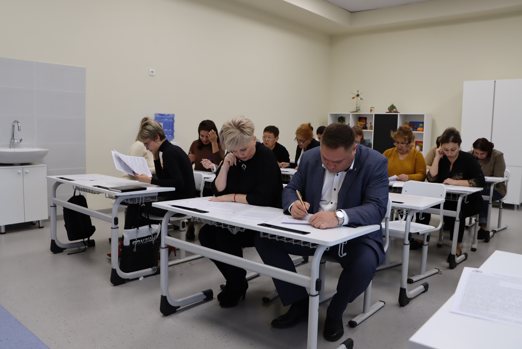 Для чистоты эксперимента перед началом акции директор школы Владимир Гудков предложил педагогам убрать мобильные телефоны и проверить свои знания без использования подсказок.