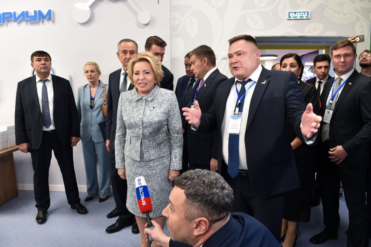 В ходе визита Валентина Ивановна Матвиенко встретилась с обучающимися и педагогами школы, посетила учебные классы, планетарий, кванториум, киноконцертный зал, бассейн, школьную столовую. Председатель Совета Федерации ФС России интересовалась оснащенностью учебных аудиторий современным оборудованием, условиями организации образовательного процесса, условиями работы педагогов.