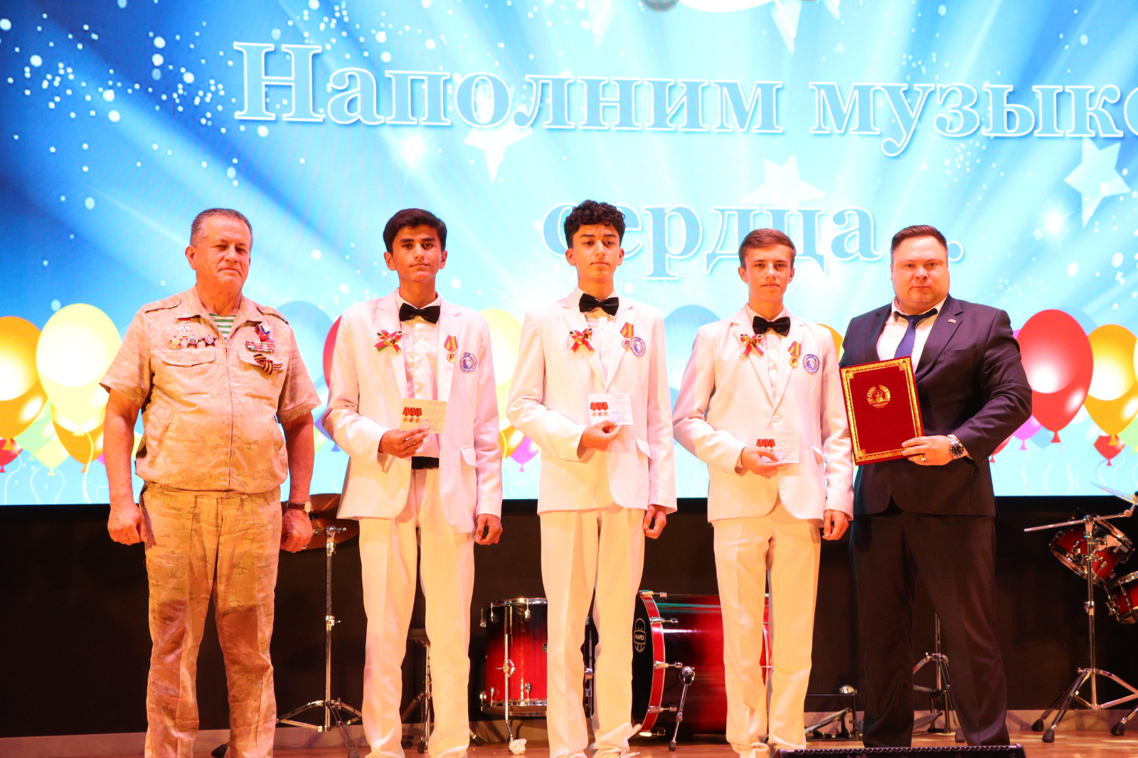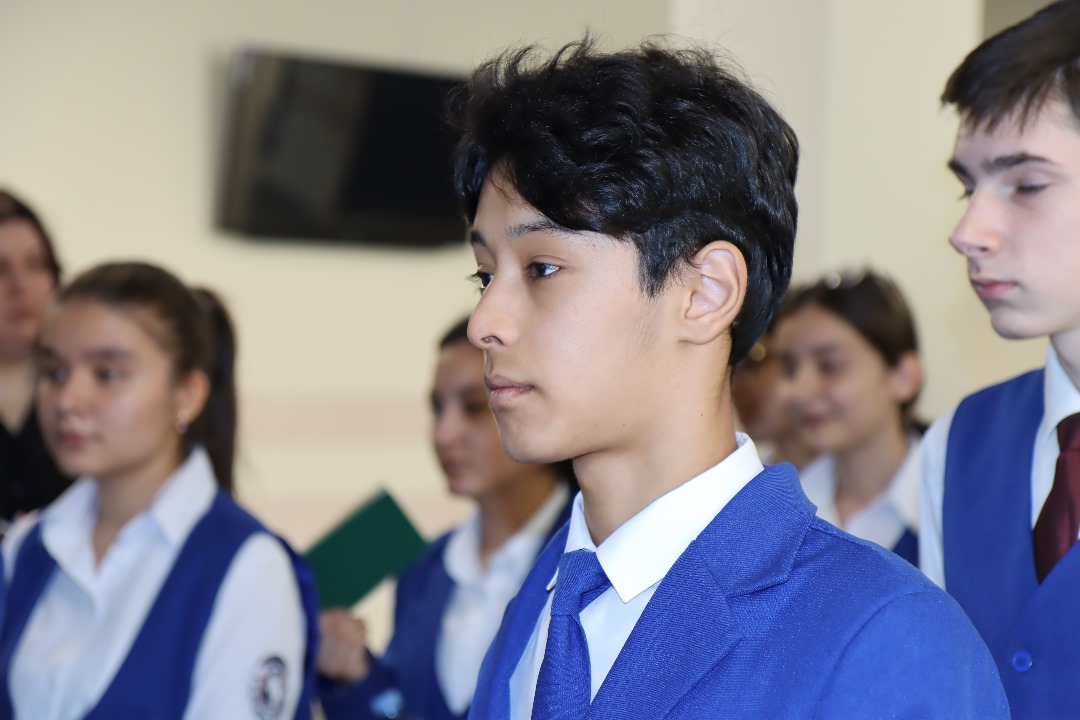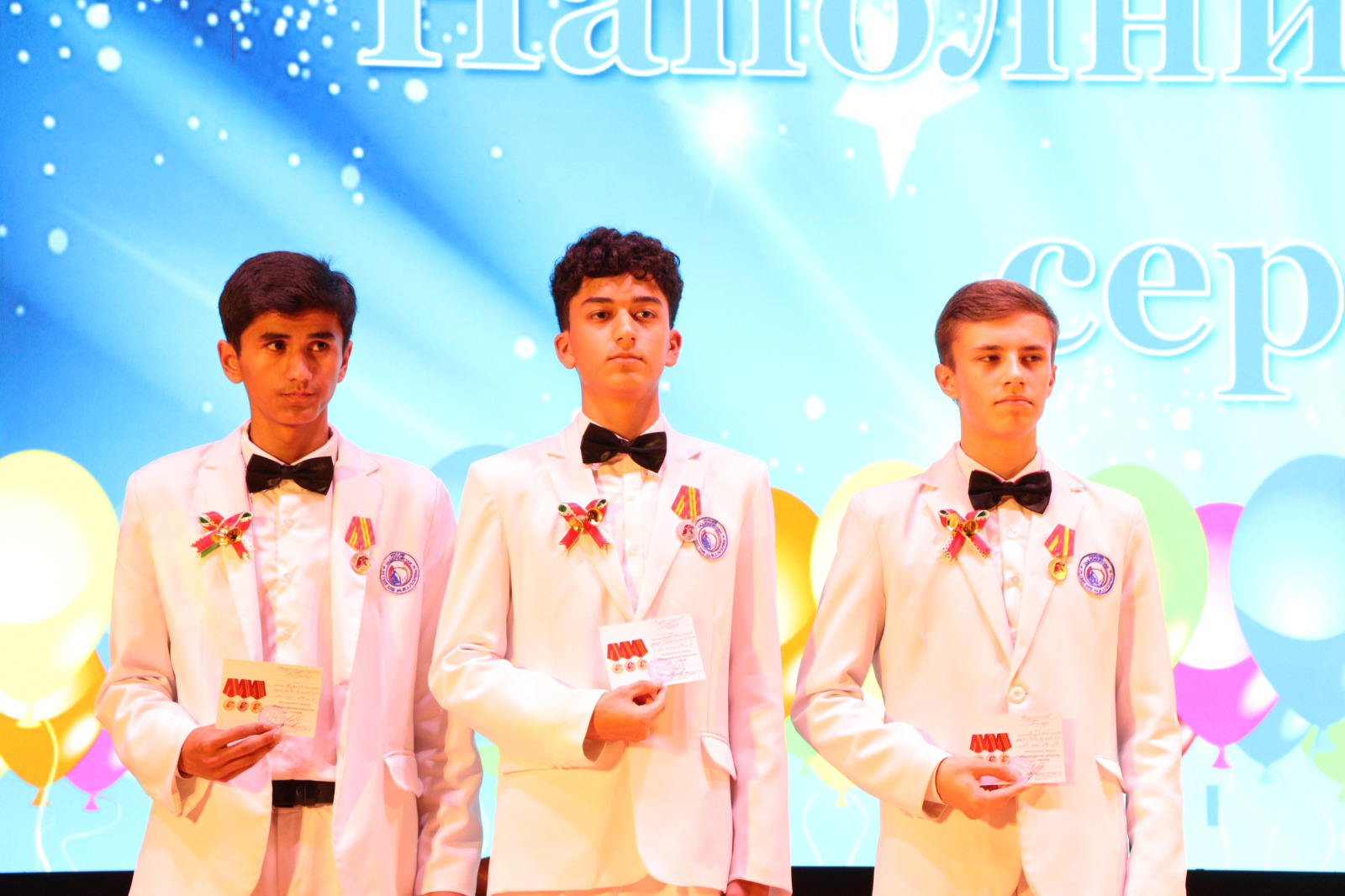 Поздравить наших учеников пришли и уважаемые гости: Первый секретарь Посольства России в Таджикистане Петров Дмитрий Игоревич и руководитель республиканского отделения «Боевое братство» Давлятов Саидахмад Нозирмадович, который наградил наших юнармейцев.