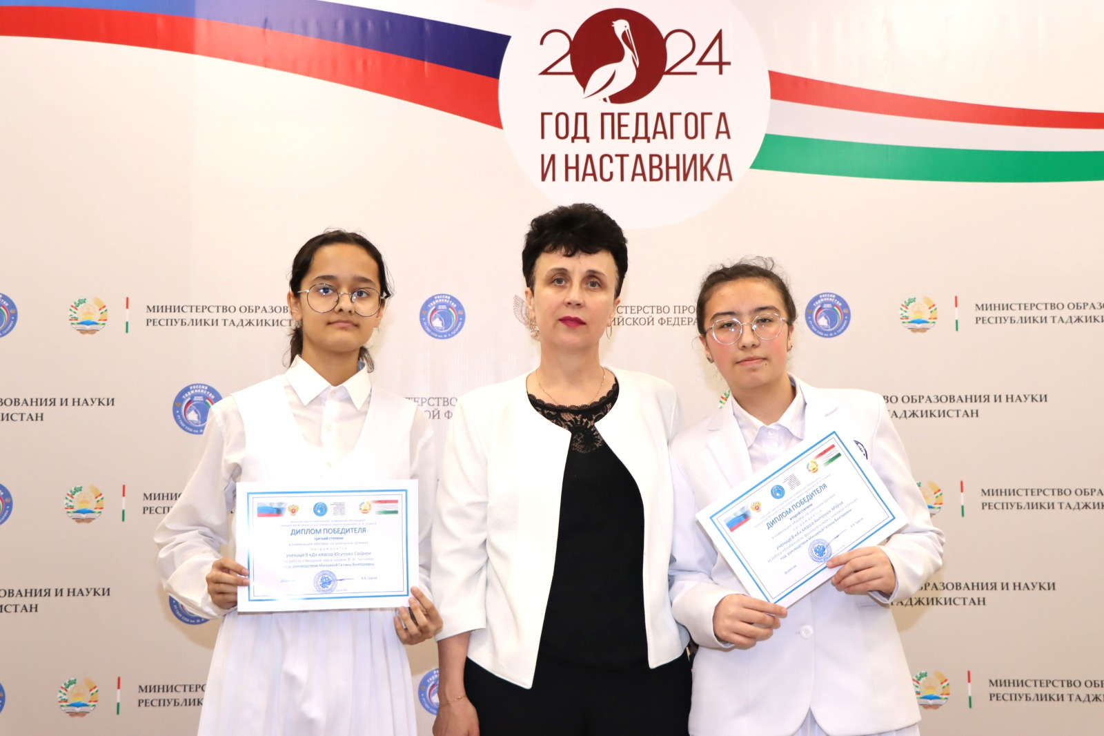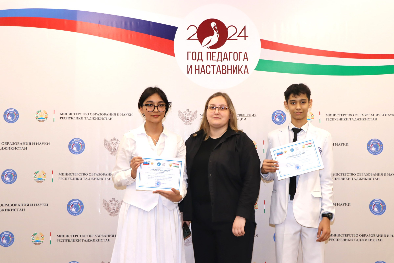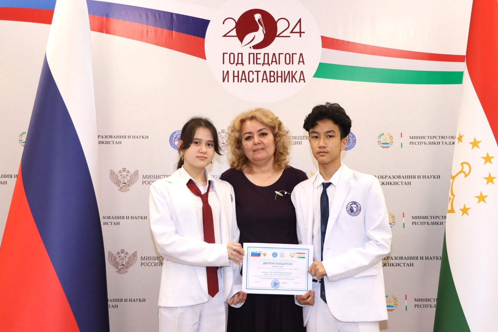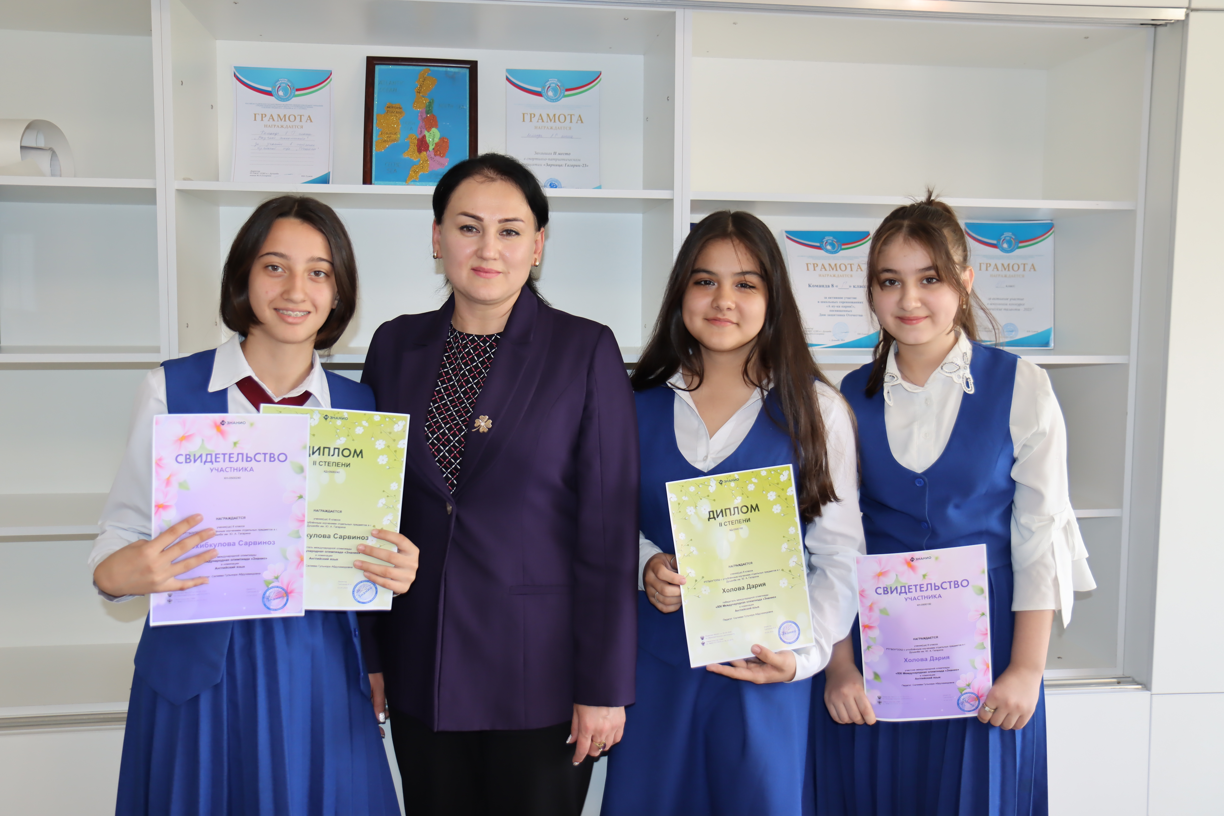 учащиеся 7 Б класса Ясмина Мавлонова и Дониёр Туйгунов с работой «Валентина Терешкова – первая женщина «Герой космоса», руководитель У.М. Хамидова – диплом победителя III степени;