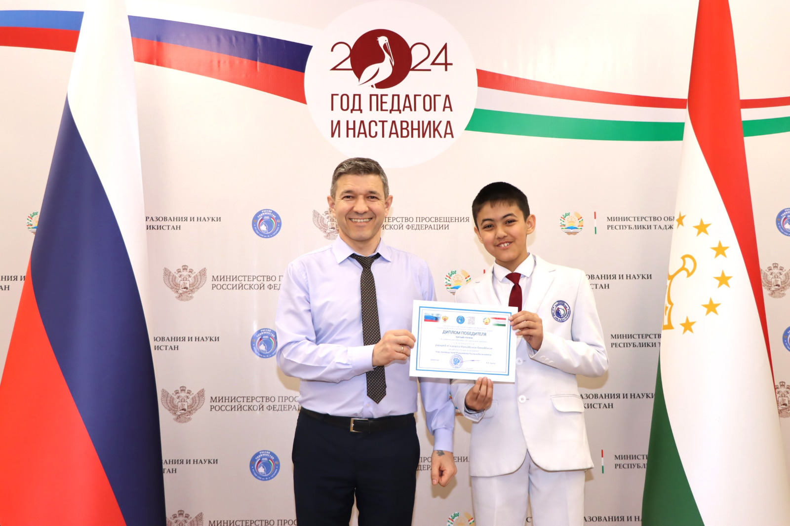 ученик 9 А класса Азизджон Тошматов с работой «Космические первопроходцы и герои космоса», руководитель И.Н. Петякшева – диплом победителя II степени;