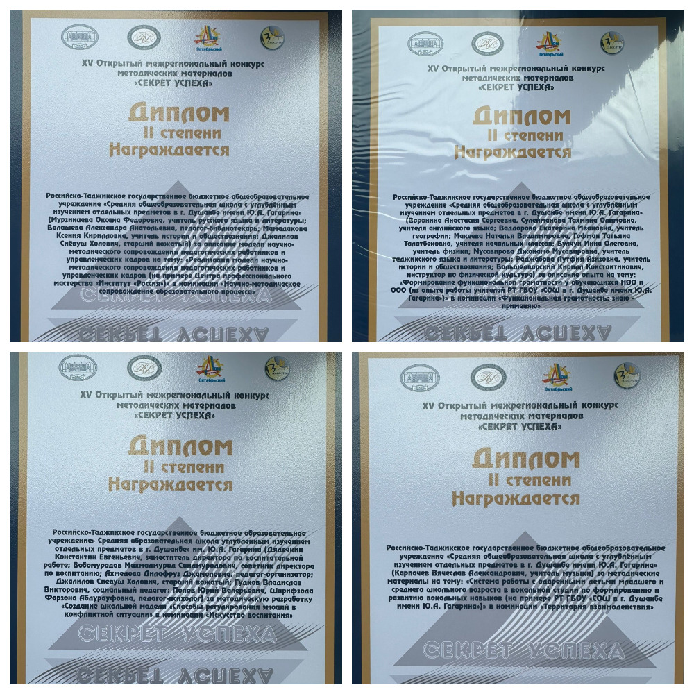 По результатам экспертизы все материалы педагогов школы имени Ю.А. Гагарина высоко оценены. Методическая разработка для молодых педагогов «Тетрадь молодого педагога» получила наивысшую награду конкурса, став лауреатом. Две работы получили, кроме диплома первой степени, дипломы специального приза организационного комитета за обобщение опыта по реализации системы наставничества и за создание цифровой образовательной среды. Материалы четырех проектных команд стали дипломантами первой степени, семь работ получили дипломы второй степени, одна работы - диплом третьей степени!