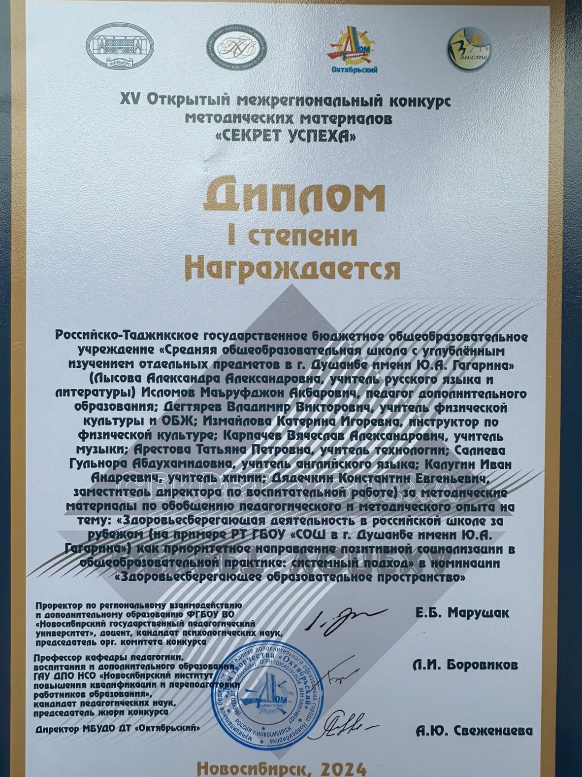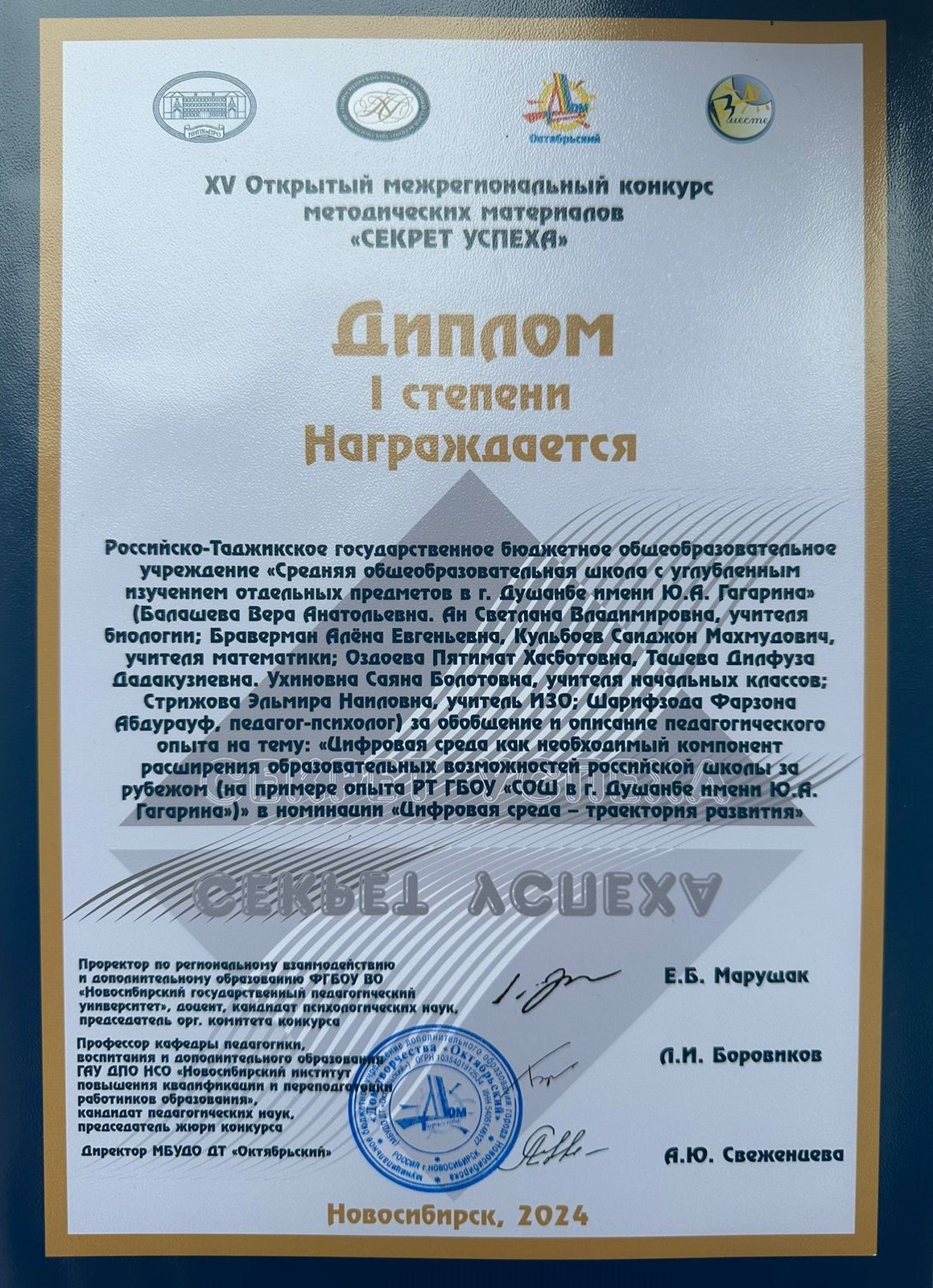 Мы благодарны экспертному сообществу ФГБОУ «МДЦ «Артек» за высокую оценку достижений обучающихся школы. Продолжаем наше сотрудничество по созданию условий для популяризации русской культуры и истории в Республике Таджикистан.