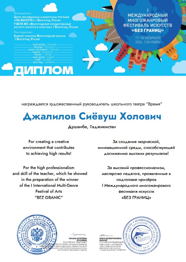 Это единственный школьный театр из Республики Таджикистан, получивший такую высокую награду на международном уровне!