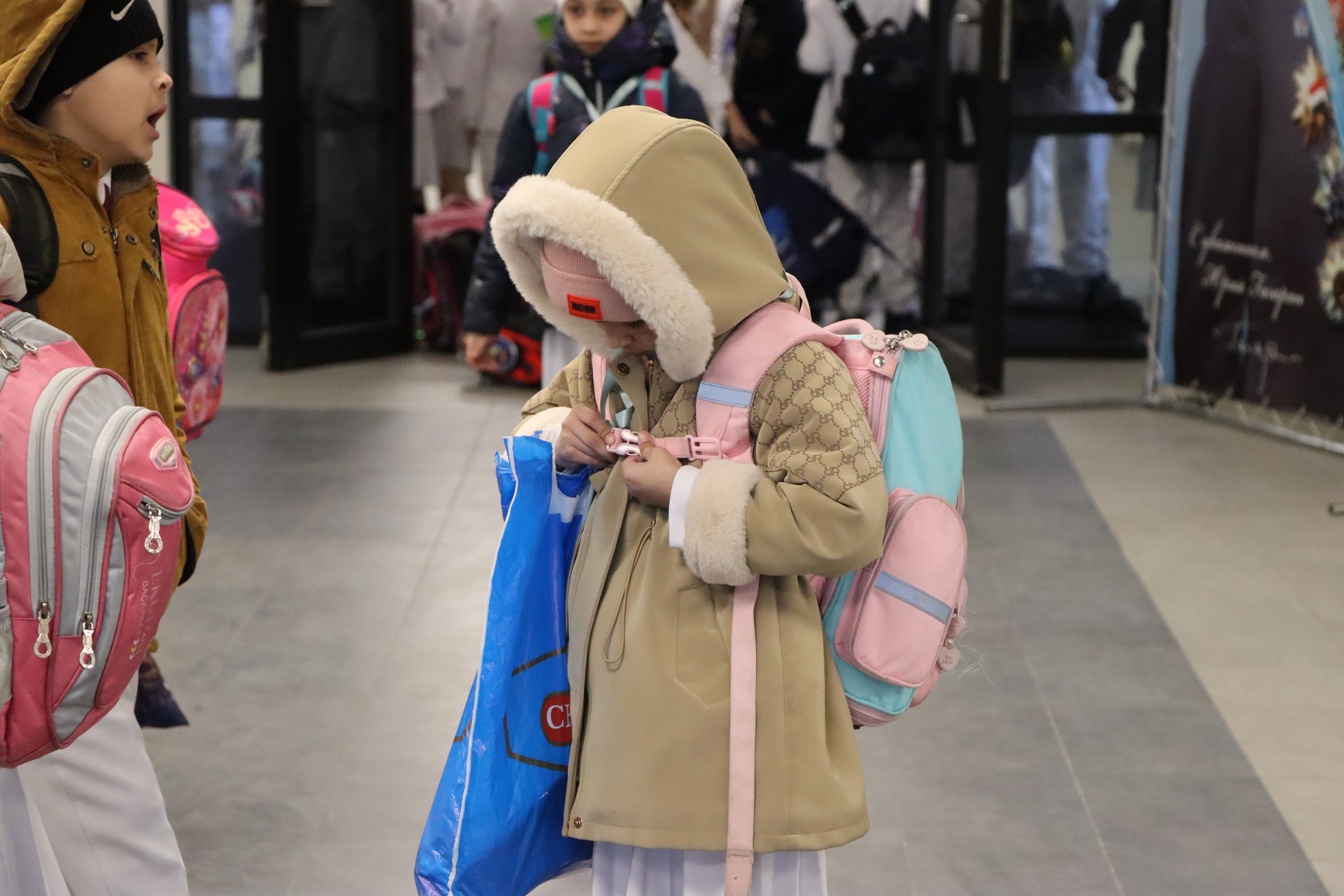 Занятия у ребят заканчивается раньше, чем у остальных школьников, что означает, что им не приходится сталкиваться с толчеей или помехами при одевании. Спокойно и поочередно они надевают свою одежду и переобуваются.