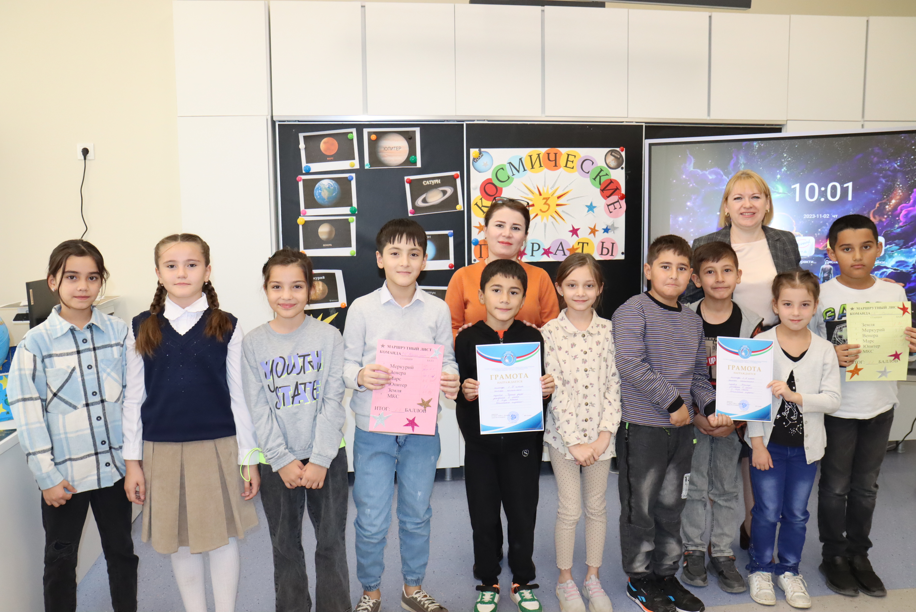 Путешествие получилось ярким, насыщенным и интересным! Дети с большим удовольствием вовлекались в задания и искренне радовались за успехи товарищей. Первыми на нашу планету вернулся экипаж 3 «Б» и 3 «Г» классов – поздравляем победителей!