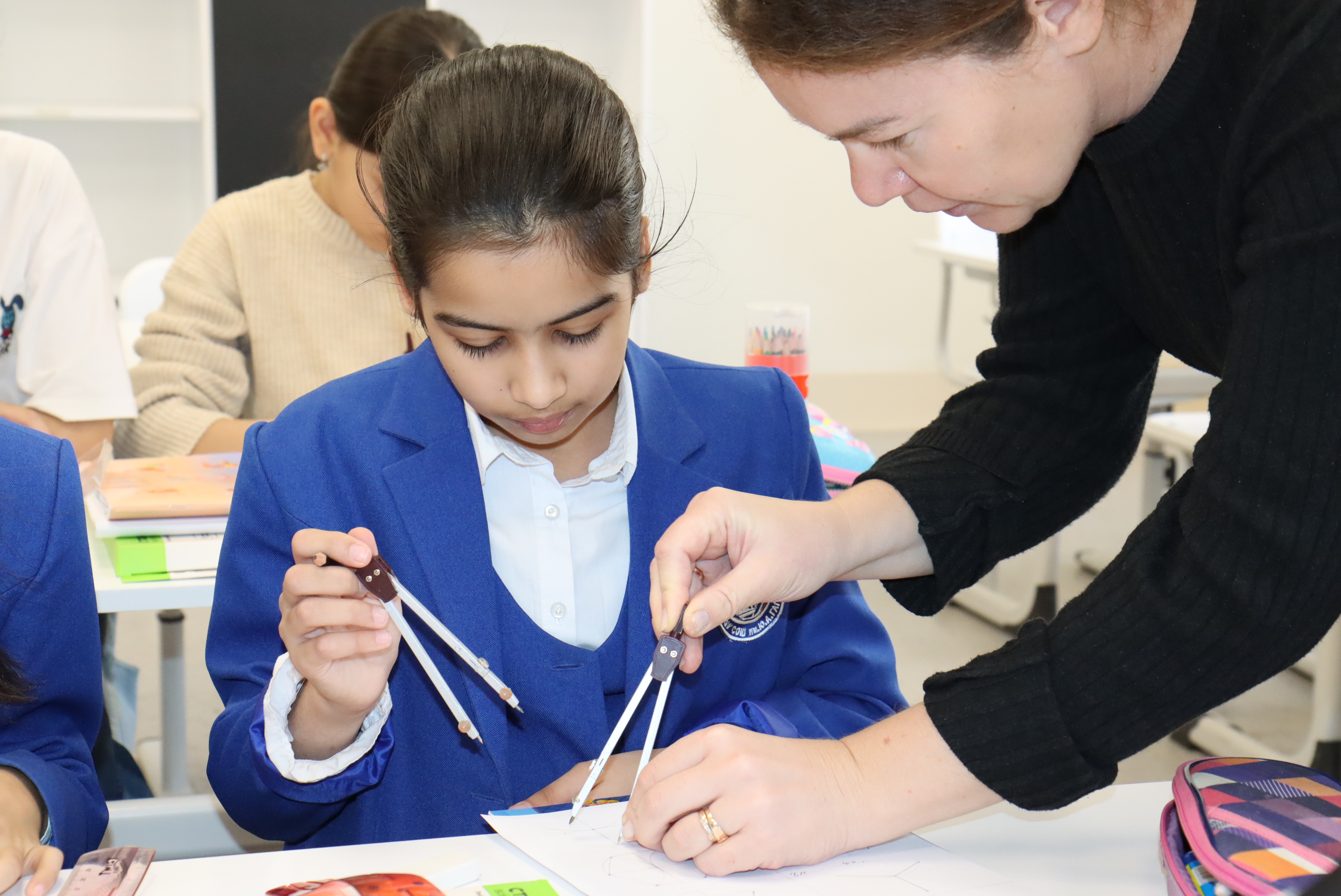 Ученики создали собственный орнамент, используя чертежные инструменты и полученные новые знания. У каждого получилась индивидуальная работа с собственным уникальным узором. На уроке царила атмосфера творчества, все старались помогать друг другу, делились задумками и давали советы.