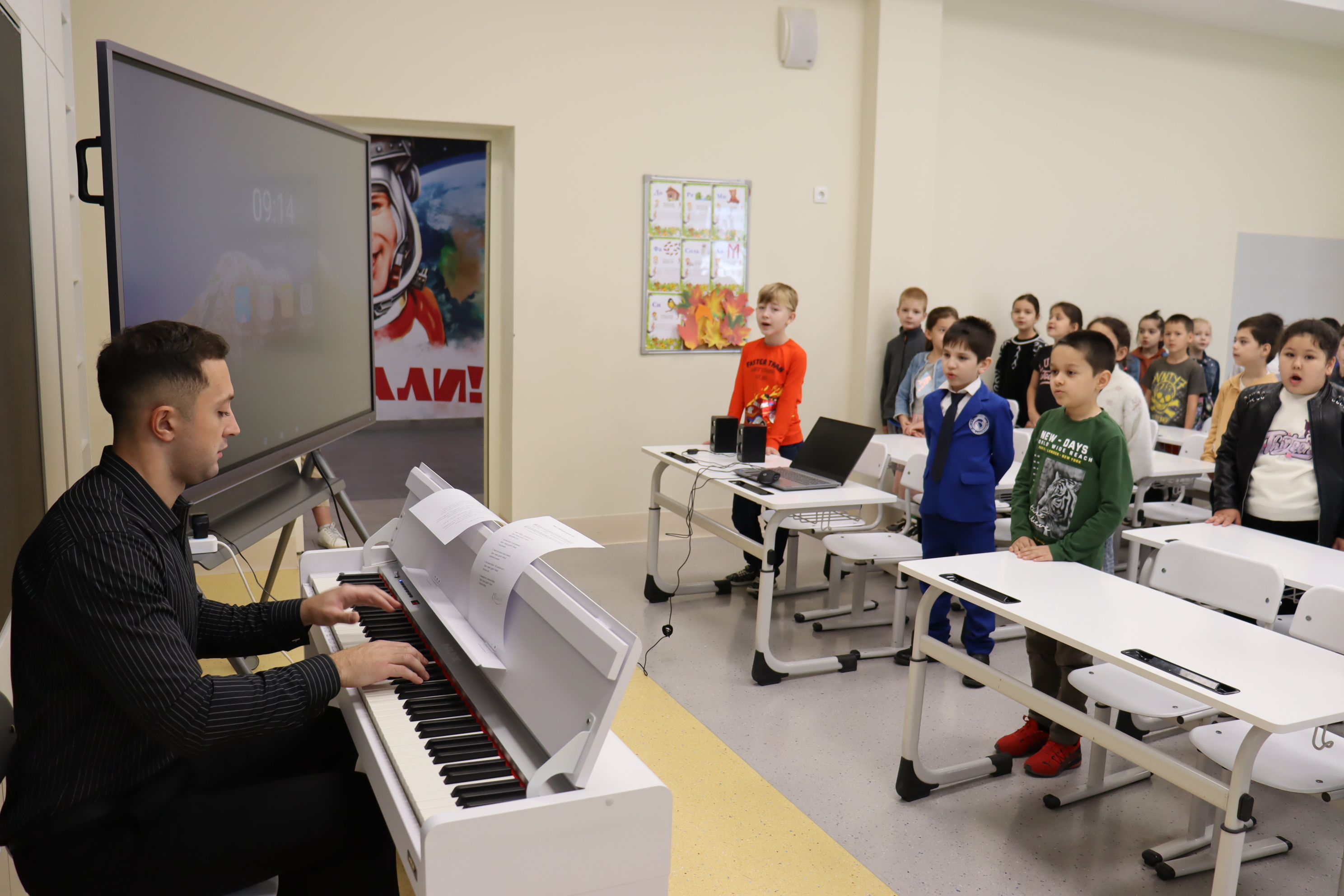 И первое занятие, которое прошло в школе имени Ю.А. Гагарина во время осенних каникул стал мастер-класс по вокалу «Путешествие в город пения». Уроки были разделены на две группы (1-2 и 3-4 классы).